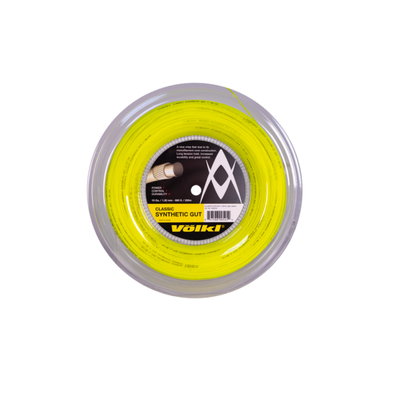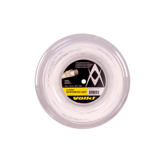 Volkl Classic Synthetic Gut to tradycyjna naciąg z centralnym rdzeniem na bazie nylonu z cienkimi oplotami zapewniającymi tradycyjne czucie gry. Classic Synthetic Gut jest dostępny w wielu wspaniałych kolorach, zarówno w rozmiarze 16, jak i 17, w atrakcyjnej cenie. Gracze poszukujący dobrze grających, wszechstronnych strun w atrakcyjnej cenie powinni rozważyć wypróbowanie Classic Synthetic Gut.