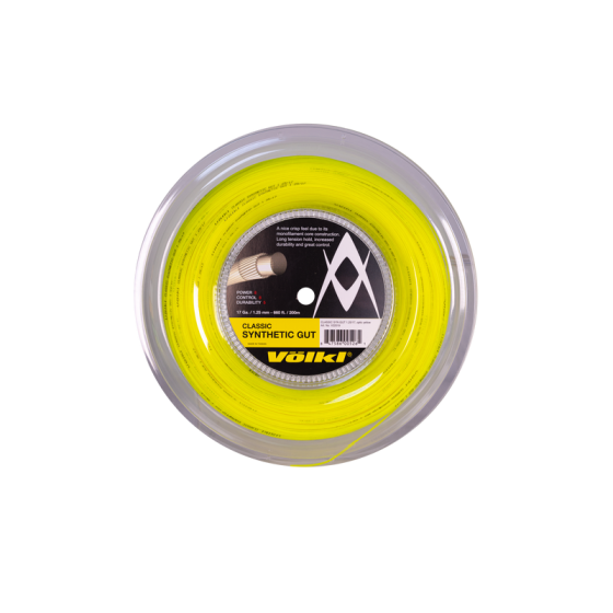 Volkl Classic Synthetic Gut to tradycyjna naciąg z centralnym rdzeniem na bazie nylonu z cienkimi oplotami zapewniającymi tradycyjne czucie gry. Classic Synthetic Gut jest dostępny w wielu wspaniałych kolorach, zarówno w rozmiarze 16, jak i 17, w atrakcyjnej cenie. Gracze poszukujący dobrze grających, wszechstronnych strun w atrakcyjnej cenie powinni rozważyć wypróbowanie Classic Synthetic Gut.