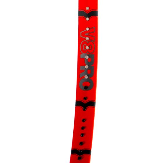 V8 Pro posiada również nakładkę REVA, VTEX, Super Grommets i uchwyt V-Sensor zapewniający doskonałe wyczucie. Rakieta waży 305 g / 10,8 uncji, główka o powierzchni 645 cm2 / 100 cali2, profil ramy 22-24-22 mm,