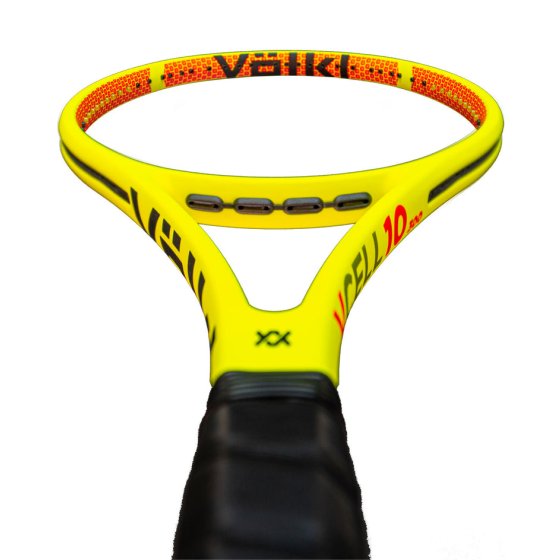 V-Cell 10 300g łączy moc i rotację dzięki nowo zaprojektowanym Super Grommets z technologią Big Grommet, zapewniając łatwy w obsłudze ciężar, który docenią gracze z bardzo szybkimi zamachami. Nowa konstrukcja ramy daje tym graczom pewność, że mogą oddać najlepsze uderzenia z rotacją i mocą w każdym miejscu na korcie, a wszystko to przy kontroli, jakiej gracze oczekują od Volkl 10!*