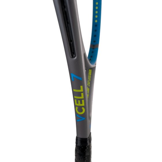 Model V-Cell 7. W połączeniu z lekką wagą, otwartym wzorem strun, nieco większym rozmiarem główki i sztywniejszą ramą, rakieta jest bardzo dynamiczna. VCell 7 zawiera więcej materiału z włókna węglowego V-Cell w kluczowych miejscach główki, REVA, VTEX, Super Grommets i uchwyt V-Sensor zapewniający doskonałe wyczucie.